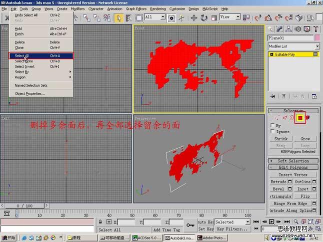 删掉多余的面之后,再选择全部留余的面。