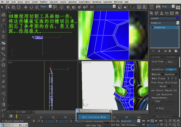 继续用切割工具画细一些,将这些镶嵌宝珠的凹槽切出来。别忘了参考图的存在,意义很深,作用很大。(图08)