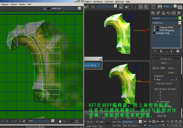 进到UV编辑器,附上画好的贴图。这里可以继续调整UV,使UV与贴图对位准确,使贴图看起来更舒服。移啊移,总能移到你喜欢的位置,总能把UV对准了。(图27、28)
