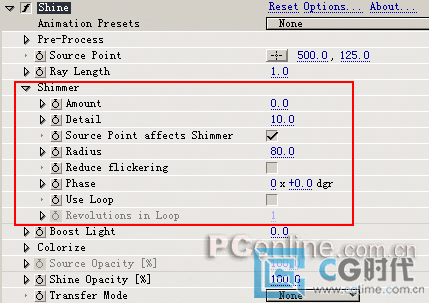 Shimmer为一些微光的控制参数。在这里可以调节光束的细节或运动参数。