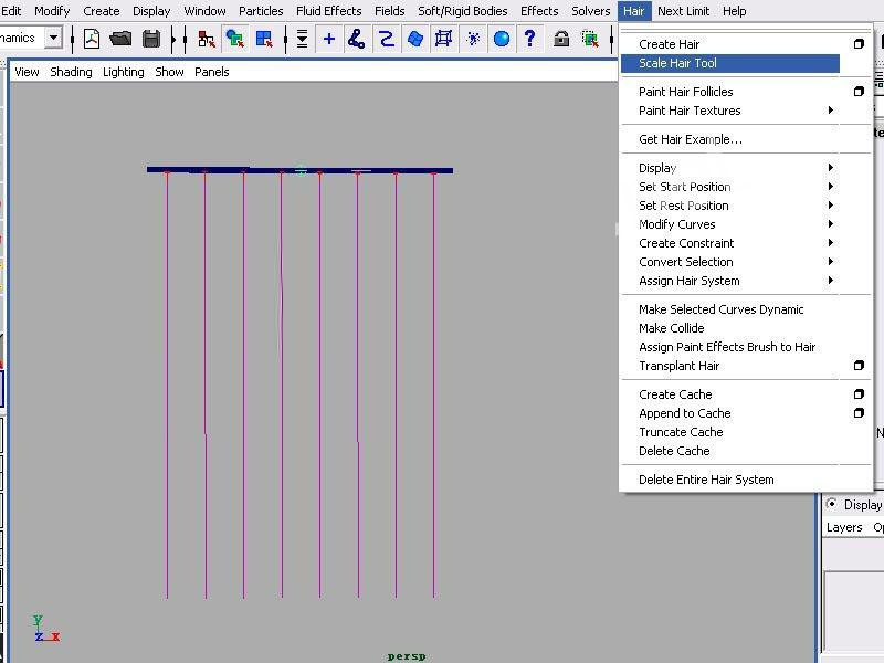 4 使用Scale Hair Tool工具增加曲线的长度,如下图所示。