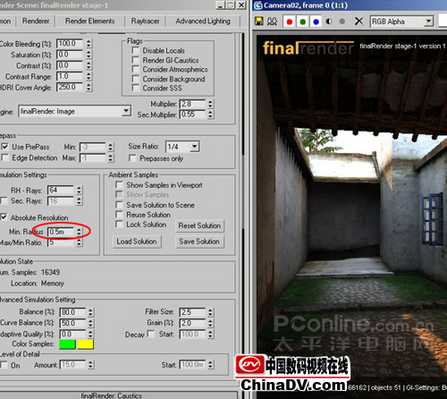 12.下面把采样调高点,Min.Radius设为0.5m, 按快捷键F9进行渲染测试。渲染时间1分54 。