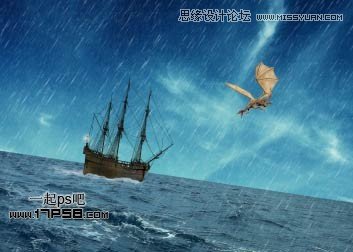 Photoshop合成教程:合成飞龙火烧海上商船壁纸(8)