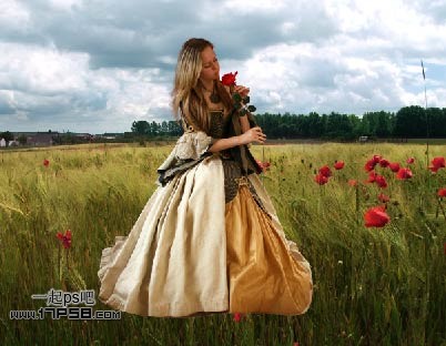 如何用photoshop把美女与背景有机的合成起来,美女手拿玫瑰,好像在想念远方的老公或其它异性,主要用到了草丛笔刷、调整层和蒙版等,先看效果图。素材下载